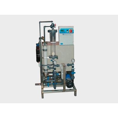 Plants with exchange resins that allow a continuous demineralization of the water. These plants can be used for both primary waters or process waters. They are often used in plating industries to allow the continuous recycling of the rinsing water following the galvanic treatment baths, ensuring constant availability of high quality water.