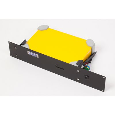 An optional 2U rack mounting tray is available, allowing the user to install the STR in a 19" rack. Provision is made for permanent wiring of DC power via DIN rail terminals, and a front panel switch is included. Cut-outs in the front panel allow easy viewing of the power and trigger LEDs during operation.