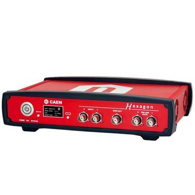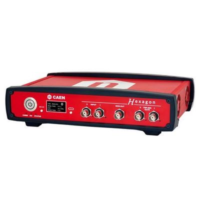 Hexagon is a stand-alone, single or dual digital 32k MCA, integrating input stage for the signal conditioning, fast analog-to-digital converter (ADC), digital processing algorithms, HV and Preamplifier Power Supply in a compact desktop form factor. The instrument is suitable for high energy resolution semiconductor detectors, such as HPGe and Silicon detectors, for CZT, but also for scintillation detectors as Nal and LaBr3. It can manage positive and negative signals from resistive feedback or transistor reset preamplifier detectors; additionally accepts signals coming from PMT anodes