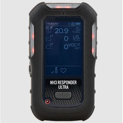 Handheld Ammonia gas detector used for detecting all levels of ammonia for leaks and hazmat response. Detection range from 0-100% LEL of Ammonia (PID: 0-1,000 PPM NH3) (LEL: 4,500 to 150,000 PPM NH3)). Includes Oxygen sensor with range of 0-25% O2 (vol). Smaller and lighter than competitive instruments. Water-resistant design in an integral concussion-proof enclosure. Large LCD allows for easy-to-read monitoring. Integral motorized pump for remote sampling and fast response. Rechargeable lithium polymer battery (14 hours runtime @ -4F). 95 dB alarm tone, bright LED alarm bars, & internal vibrating alarm for noisy areas. Auto backlight: activates in low light & when in alarm. Four alarm levels: instantaneous Low Alarm, High Alarm, TWA and STEL. Records TWA, STEL, and max exposures to gas & displays readings on command. Datalogger with programmable sampling intervals. Available options for additional H2S and CO sensors (call for price and availability).