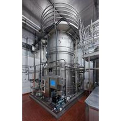 The Caloris Concentrix™ MVR evaporator delivers the highest available energy and operational efficiencies in a compact evaporator design, with models evaporating up to 100,000 pounds (12,000 gallons per hour) of water per hour at an efficiency of up to 200 pounds (24 gallons) of water evaporated per kilowatt of power consumed (42 watts/gallon). The Concentrix MVR is a high-efficiency falling film evaporator system using proprietary turbofan technology for heating by Mechanical Vapor Recompression (MVR), driving the evaporation process with electrical power. Falling film evaporation technology means that only a small quantity of product is held inside the Concentrix at any given moment, minimizing the time required for system start-up, rinse-out, CIP and shutdown.