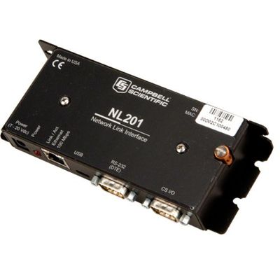 The NL201 is a serial-to-Ethernet interface that provides a wired Ethernet network connection to data loggers, peripherals, and other serial devices. The NL201 supports sophisticated networking capabilities for PakBus devices and networks. Using a unique technique to bridge the Ethernet and CS I/O ports, the NL201 can provide direct access to the integrated IP functionality of some Campbell Scientific data loggers. The NL201 can also act as a standard TCP serial server, serial client, Modbus TCP/IP gateway, and TLS proxy server for HTTPS and user-defined-port communication.