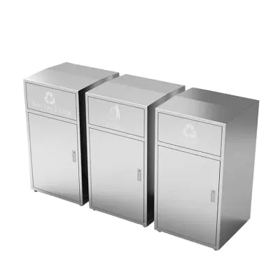 The CRC-707N is a versatile recycling solution designed for both indoor and outdoor environments, suitable for integration in parks, community centers, libraries, educational campuses, and business hubs. This model features three distinct bins, facilitating efficient segregation and recycling of waste. Constructed from premium stainless steel, it offers a modern aesthetic and robust durability to withstand diverse weather conditions. The recycling bin's design incorporates intuitive symbols and text for user guidance, enhancing the efficiency of recycling activities. The front-access door in each bin allows for quick and easy maintenance, making waste disposal faster and more convenient for custodial staff. This product represents a commitment to environmental sustainability and green infrastructure goals, appealing to designers and project managers aiming to implement eco-friendly amenities. The CRC-707N not only meets practical waste management needs but also reinforces environmental responsibility.Canaan Site Furnishings - Model CRC-705 - Commercial Steel Recycling Receptacle