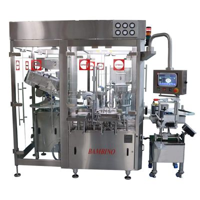 Designed for mobility, the Bambino is a compact single-indexing rotary multi-station monoblock. It features various systems for filling, plugging, capping/crimping, and labelling, making it a versatile solution for diverse applications.