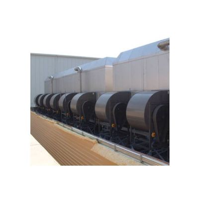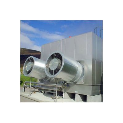 Carter adiabatic coolers do not create an aerosol or wet the surface of the coil. Adiabatic cooling is achieved by mains water distributed over an evaporative cooling media through which the incoming air passes through. The cooled dry air then passes onto the coil for cooling. This method in turn prolongs the coil life by reducing coil fouling and reduces the need for expensive mains water treatment. Units are available in one to four fans as single coolers as standard. Optional extras include attenuation package, stainless steel casing, winter coil heater package, skid mounted cooler and pump sets.