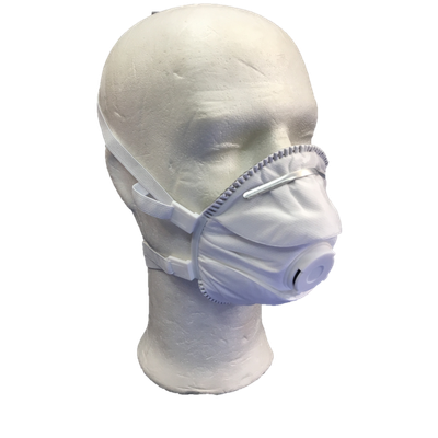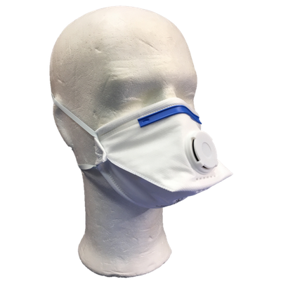 Application: Single-use filtering respirator mask. FFP3 protection: solid and liquid toxic particles (99% filtration of aerosols of average size 0.6 µm). Adaptable to all morphologies thanks to the nose clip. Comfortable thanks to the elastics passing behind the head.