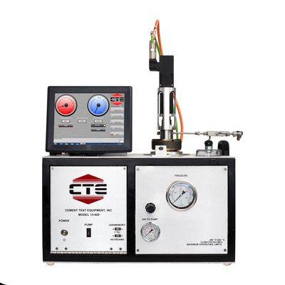 Thickening time tests are designed to determine the length of time a cement slurry remains in a pumpable, fluid state under simulated wellbore conditions of temperature and pressure. The test slurry is evaluated in a pressurized consistometer, which measures the consistency of the test slurry contained in a stationary cup while under simulated well bore conditions. This portable, rotating paddle design gives laboratories greater placement flexibility. The consistency of the fluid is measured in Bearden units (Bc). The CTE model 15-400 is capable of exposing cement slurries to a maximum of 400F and 15,000 psi (204C and 103MPa) for simulating high-temperature, high-pressure applications. This instrument is also capable of measuring the formation of static gel strength at any time during or after a thickening time test or as a gel test performed by itself. The ability to measure gel strength after a period of simulated pumping more accurately reflects the conditions experienced in cementing operations and improves upon current testing methodologies.