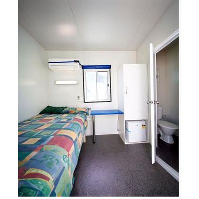 Fully adjustable reverse cycle air conditioning. Provision for internet and data communications. Provision for satellite TV as option. Window block-out screens for nightshift operations. High quality fittings and fixtures. Dust proof door seals insulated for temperature & noise control. Single room & ensuited.