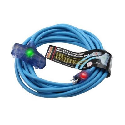 Our Sub Zero Triple Tap rubber elastomer cord features our patented "CGM" Continuous Ground Monitoring three outlet connector. This latest safety feature identifies that there is ground continuity in a circuit when the green light turns on. In addition, the lighted amber male plug indicates there is power flowing through the cord. Our special -58°F “Sub Zero®” coldweather jacket insures working flexibility in temperatures well below freezing.