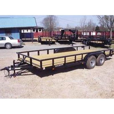 New tires and rims, prepped,primed & painted, 3500 lb. Axles, diamond plated fenders. 2" square tube top rail. 4" channel iron frame. 2x8 treated wood floor, 2 in. Bulldog style coupler, rear board drop, 5 hole silver mod wheels set-back reinforced drop foot jack, safety chains, channel iron tongue, screw down board caps, 4 way flat plug ( 6 or 8 way with brakes), led rubber mounted sealed beam lights 1 year warranty.