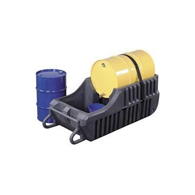 Eliminates the risk of spills while transporting drums, pails and other materials. Features a 30 gallon sump capacity, durable polyethylene construction, four casters and a removable grate for easy cleaning. Holds up to two 55 gallon drums. Load capacity is 2000lbs.