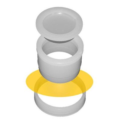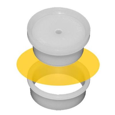 Slit-Vented “Snap-On” Sample Cup Caps are unlike traditional caps with vented holes. These innovative caps are specifically designed to form a series of circular physical barriers when attached to a 1500 Series XRF Sample Cup. The barriers are created by the inter-relationship between integrated ridges on the interior of the cap and the Cell Neck when assembled. This forms circular troughs representing passageways leading from the interior of the sample cup to the sample chamber. The barriers present complicated paths of travel for sample particles to reach the sample chamber. Slit-Venting is used instead of traditional holes in order to increase the volumetric quantity of air withdrawal with minimum disturbances to the powdered sample substance while maintaining taut thin-film sample window planes.