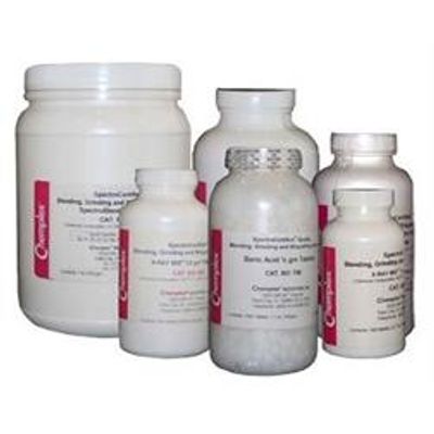 Most powdered sample substances are considered multi-phased or compositionally complex. They are comprised of individual particles or crystal phases frequently dissimilar in composition, density, hardness, configuration, size and distribution. Each particle tends to behave as a separate entity from its surrounding constituents. Chemplex® grinding and pelletizing additives are formulated to aid in the grinding and pelletizing process by reducing particles to a uniform size and distribution forming a homogeneous sample blend for XRF analysis. Under pelletizing pressure, the powdered samples are transformed into "plasticized" pellets with smooth unblemished surfaces resistant to inadvertent chipping or flaking apart. Samples may be saved for future referral.