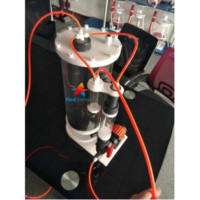 The calcium reactor operates in conjunction with carbon dioxide supply device. After carbon dioxide enters the reactor, it dissolves in water and produces acid H2CO3. Carbonic acid reacts with calcium carbonate CaCO3 in the reactor to form Calcium bicarbonate (HCO3)2, which flows into the fish tank and increases the carbonic acid content in fish tank water. Since calcium bicarbonate is soluble in water, it can be absorbed by marine life and converted back into calcium carbonate, an important part of its skeleton.
