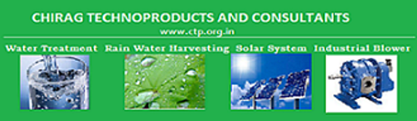 Established in 2016 “CHIRAG TECHNOPRODUCTS AND CONSULTANTS” Founded by group of technocrats to strive the passion of business by putting through years of industrial & commercial experience. We are mainly engaged in environment related activities. Broadly we care for earth by harnessing the Power of Sun, Purification and harvesting of Water & making pollution free atmosphere by purification of air. Products/Services- Deals in Packaged Sewage Treatment Plants, Effluent Treatment Plants, Water Treatment Plants, RO Plants, Water softeners, Drinking Water Purification Plants, River/Well water purification Plants, Rain Water Harvesting. AMC for STP/ETP, augmentation and servicing of Existing STP, ETP, WTP,RO Air Blower, Roots Blower, KPT Blower Sales and Service. Centrifugal Fans, Axial and Tube axial Fans, ID/FD Fans, Degasser blowers etc. After-cooler, Heat Exchanger for Air Blower.