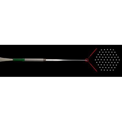 Pitch Reducing Optical Fiber Arrays (PROFAs) provide low loss coupling between standard optical fibers and photonic integrated circuits. Unlike typical fiber arrays, they also provide high density coupling that minimizes the valuable chip real estate needed for optical input/output (I/O). They can provide spot size conversion between small cross-section, chip-based waveguides and standard optical fibers. Two-dimensional (2D) PROFAs are used for chip surface coupling to vertical grating couplers with mode field diameters of approximately 6 or 10 µm or to chip-based devices such as VCSELs or photodiodes. Standard 2D PROFAs are available as hexagonal lattice arrays with up to 61 channels. One-dimensional (1D) PROFAs (see separate PROFA1D datasheet) are available in standard linear arrays of one to six channels and are typically used for chip edge coupling to waveguides with approximately 2 µm diameter mode field sizes.