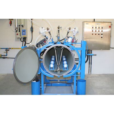 ChlorTainer's Twin Secondary Containment Vessel is ideal for moderate-volume users of chlorine. The Twin Secondary Containment Vessel is built to accommodate two standard 150 pound chlorine containers. In Twin Container mode, both containers are processed simultaneously.ChlorTainer - Dual Chlorine Gas Cylinder Secondary Containment Vessel