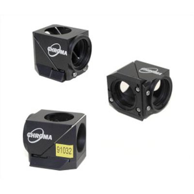 Exciter (x) = 25mm, Emitter (m) = 25mm, Beamsplitter = 38x26mm. Designed to hold the recommended 2mm dichroics for TIRF applications. Accommodates dichroics up to 3mm for critical applications such as TIRF, structured illumination, super-resolution and image-splitting. Allows for precise alignment of dichroic angle of incidence during assembly by Chroma. **Not a standalone product. Sold with dichroic mirror installed at minimum.