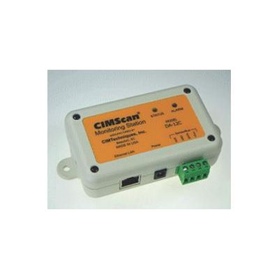 The DA-12 Monitoring Station is a small yet sophisticated remote data acquisition controller for use with the CIMScan monitoring system. The DA-12 supports the attachment of up to 16 wired or wireless sensors. The inexpensive type CT/CF/CZ wired devices connect to the DA-12 via a common 4-wire multi-drop network called the SensorBus. The battery-powered PS series wireless sensors communicate with a receiver attached to the DA-12 using the uncrowded 418/433 MHZ band. The DA-12 communicates with the CI MScan server computer using TCP/IP via direct connection to an RJ-45 Ethernet LAN port (DA-12C) or via Wi-Fi (DA-12W). It is also possible to link a DA-12C to the server via the cellular telephone network using a small Ethernet to GSM/GPRS bridge.