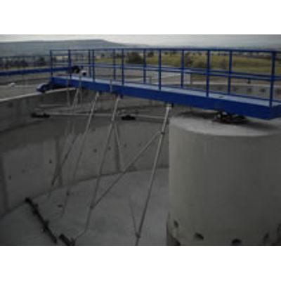 Rotating bridge scrapers are used in preliminary settling and final settling tanks in order to prevent the settling chemical and biological sludge (activated sludge) from accumulating at the bottom of circular settling tanks and removal of the scum from the clarifier surface. Rotating bridge scrapers are also used for removing the layers of oil formed on the surface. Rotating bridge scrapers usually operate at a speed between 2-8 cm/second. Their reducer speeds and motor outputs should be selected appropriately. Our rotating bridge scrapers can be manufactured based on the diameter or the radius of tanks. Rotating half bridge scrapers consist of a central bearing, a bridge, scrapers, scraper pallets, and a drive group. The central bearing are equipped with ball-bearings that can carry all kinds of static or dynamic loads. Two types of rotating bridge scrapers can be manufactured, which are centrally-driven and peripherally driven scrapers.