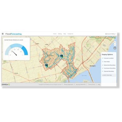 Flooding potential is a function of climate and watershed conditions. Civica’s Flood Forecasting system uses spatial-enabled climate forecasts plus current, field-verified antecedent moisture conditions and other watershed data (hydraulics and vulnerable site characteristics) to issue real-time notices and warnings to the municipal managers responsible for responding to flood vulnerable sites. In an era of climate change and extreme weather events, Civica partners with municipal and rural watershed managers, through constant updates and access via mobile devices, to stay ahead of developing flood risks