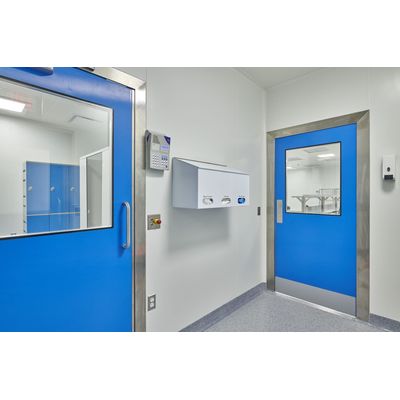 CleanSpace’s standard door hardware package includes stainless steel pull handles, push plates, kick or armor plates, and stainless steel covered door closers. We can also provide magnetic interlocking systems with push button or wave plate access and Go/No-Go Lights, which can be integrated with automatic door operators.