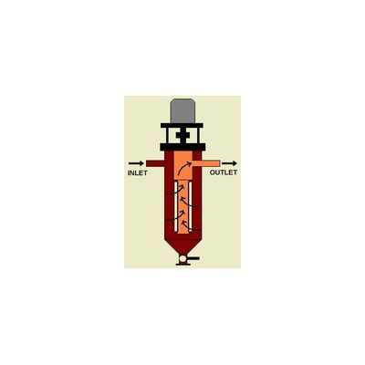 No moving parts. Unique `Tilted wire` welded wedge wire sieve bend. Simple screen holding arrangement. Top over flow / Spray jet feed. Pneumatically operated washing jet for screen surface. Solids conveyor at the bottom, optional,. 50 Microns and above.