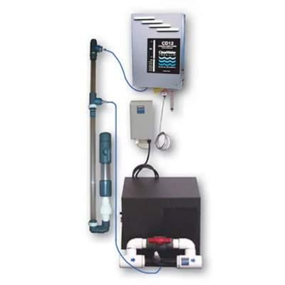 The Apex III system from ClearWater Tech includes the CD12/AD ozone generator with a built-in air dryer, flow meter/vacuum gauge assembly with vacuum switch, injector manifold, check valve assembly, and vacuum break. Perfect for residential swimming pools, commercial spas, and water features.