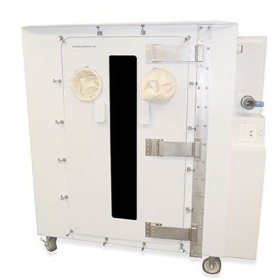 The ClorDiSys Portable Decontamination Chamber offers the ability to decontaminate small and medium sized equipment and components inside a portable chamber rather than in an entire room or a large fixed chamber. This allows for a quicker, more cost effective and versatile decontamination cycle by reducing the amount of time and consumables used.