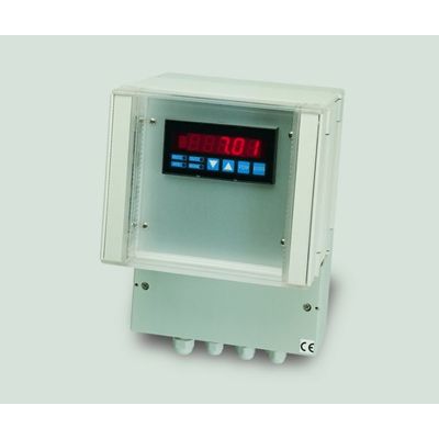 Microprocessor based PID controller, fully programmable, suitable for panel mounting (IP54 protection degree) and outdoor installation (IP65 housing). Instrument configuration is easily performed via display and keyboard and calibration is automatic. Measure and temperature are indicated on a 5 digit red LED display. Mod.uP can be directly connected to pH, ORP or ISE sensors and to the pertinent temperature sensing element. The measure is compensated for temperature variations, according to dedicated algorithms specific for each parameter and displayed in engineering units. Temperature compensated value is used in the PID algorithm. The PID controller is available either with analogic control output (4-20 mA or 0-10V, galvanically isolated) or with digital control output (conatct output); in this versione the 4-20 mA (or 0-10 V) output is available for temperature compensated measure retransmission.