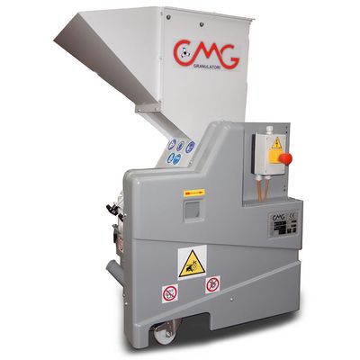 Utmost application flexibility: CMG launches a new series of small size beside the press granulators with connotates of high caliber. The very innovative and unique attributes of such new series are several and all contribute to obtaining the highest degree of productivity, regrind quality (homogeneous particle dimensions and absence of dust), efficiency of operation and the best application flexibility. In its standard configuration the G17 granulators are applicable to processes of injection moulding and of blow moulding. In the ET1 or ET2 configuration, they are suitable for extrusion applications. The granulation capacitiy range is from 5 kg/h up to 90 kg/h.
