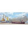 Transport and/or rolling off on inland water vessels of complete oil platform parts (upper sides, maintenance decks, etc.) or petrochemical factory modules.