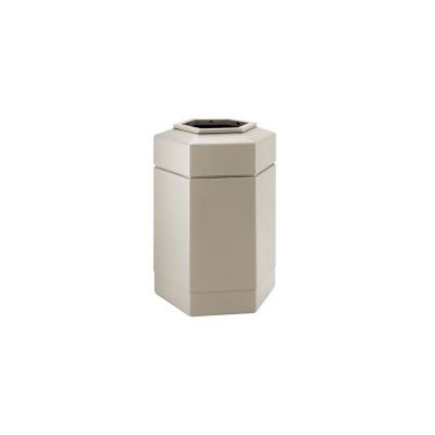 Hexagon Shaped Waste Container. Unique hexagon shape complements any facility and creates a clean and attractive look. Large 30-gallon capacity waste container can be used year-round indoors or out. Easy-access 9 ½” hexagonal opening makes disposal convenient. Made from long-lasting polyethylene to withstand the harshest environments. Hexagon shape of these containers is a registered trademark of DCI Marketing, Inc.Lift off lid to remove trash bag. Includes Grab Bag™ system to secure trash bag in place for a clean look. Uses standard 39-gallon trash bag. Plastic is approximately 1/8” thick. 50% post-consumer recycled content (color black). 25% post-consumer recycled content (colors beige and gray). Made in USA. 1-year warranty.