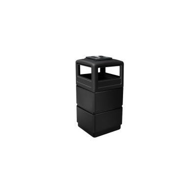 Ashtray Dome Lid Block-Style Trash Can. Space-saving container with dome lid with ashtray is the perfect all-in-one ash and trash solution. Convenient access on all four sides with large rectangle openings of 12 ¼” x 6”. Unique block-style waste container complements well to any building structure. Includes a metal powder-coated ashtray that lifts out for easy disposal. Security clips add security to ashtray and opening includes snuffer to extinguish cigarettes. Top dome lid lifts off easily for trash removal and telescoping lid conceals trash bag. Waste container includes patented Grab Bag™ system to secure trash bag in place to prevent slippage. Durable waste container is designed to withstand the harshest weather environments. Molded from long-lasting polyethylene; won`t rust, dent or chip. Plastic is approximately 1/8” thick. 50% post-consumer recycled content. Made in USA. 1-year warranty. Ships in two cartons.