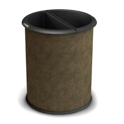 Complement modern guestrooms or offices and encourage recycling with the stainless steel, black vinyl or brown vinyl trash and recycling container – a compact, space-saving waste solution. The fingerprint-resistant material keeps this container looking clean while its large liner allows for convenient disposal. This unit includes a set of decals that allow you to personalize your container for easy recycling identification.