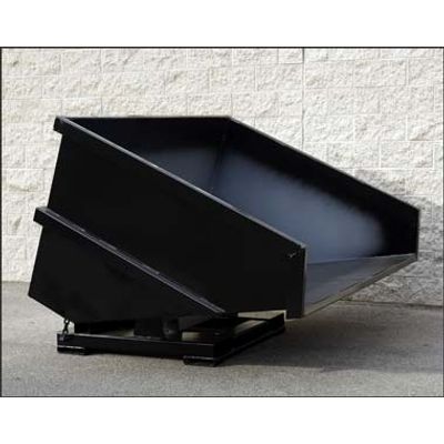 12 GA heavy duty construction. Center banding for support. Dropped front for clean dumping. 1 cu yd has no drop front. Heavy duty base with 7 GA fork channels and skids. Pivot axles have grease fittings and pivot plates are reinforced with 7 GA support structure.