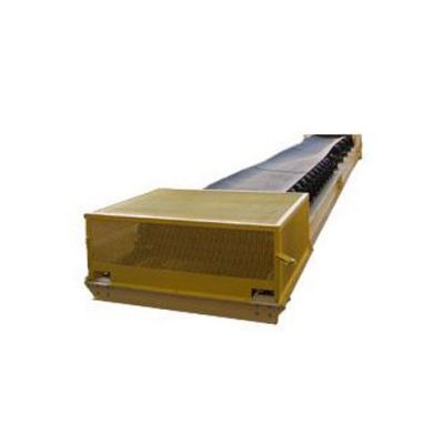 Drag conveyors are designed to convey a high volume of material requiring much smaller amounts of space. Material is moved as a large mass with no internal turbulence, at low speeds. The high capacity and lack of turbulence allows the drag conveyor to handle almost all types of bulk material and can be used to meter or transfer bulk materials from one process to another. The design allows drag conveyors to fit almost any plant layout. Minimal long term maintenance and durability are characteristics of a drag conveyor.
