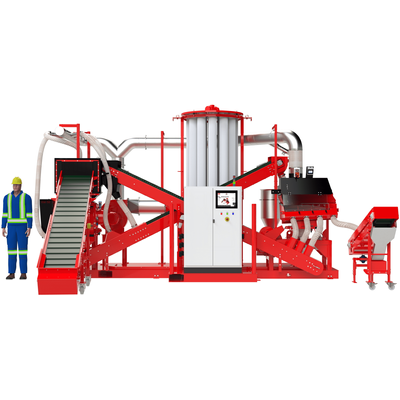 Double your capacity and halve your manpower with Phoenix XD fully automated wire chopping line. Our mini-plant, Phoenix, is upgradeable to Phoenix XD at any time with our "XD Upgrade" module. You never lose your initial investment if you first purchase Phoenix then decide to upgrade later, in fact over 60% of our customers go this route. The included Wagner WS30 60 HP Shredder features a large infeed hopper capable of handling large coiled material and gaylord quantity loads at a time! No pre-cutting necessary. No need to de-spool plastic spools.