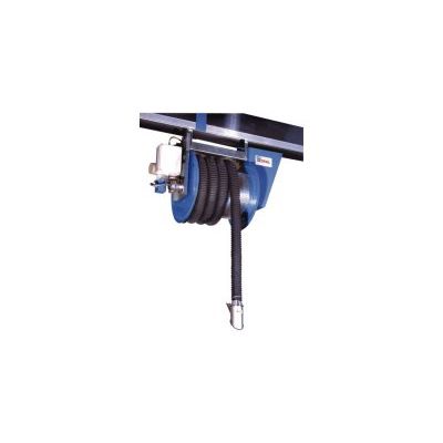Hose reel with mechanical rewind differs from APTC-C model in the coupling with an `1AM` series electric exhauster. Thanks to its compact size, the APVTC is ideal for cars and motocycles workshops where autonomos workstation are needed. It can be fitted on either the wall or the ceiling. Complete with flexible hose mod. T-GAS, adjustable safety stop AlS, nozzle BNT, hose-clamp and with rubber covers. Suitable for centralized extraction system. On request, the APVTC could be supplied with automatic exhauster startinq device (SYSTEM-CM).