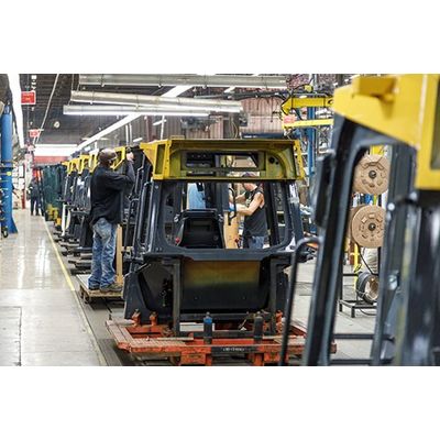 Final cab assembly is accomplished on either a powered floor level wood slat conveyor measuring 5 ft x 324 ft long, or six individual non-powered assembly lines ranging from 41 feet to 165 feet in length. Each line is individually capable of integrating complex electrical and electro-mechanical components into the final cab assembly.