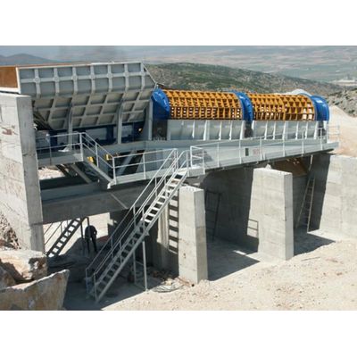 VTSM rotating screens, also called bar screen, are studied in a specific way for the cleaning of the material. Their scope is very broad, from the recycling of materials coming from the crushing to the waste industry. The screen cylinder is constructed with big thickness plats for supporting the weight of the rock inside the machine.