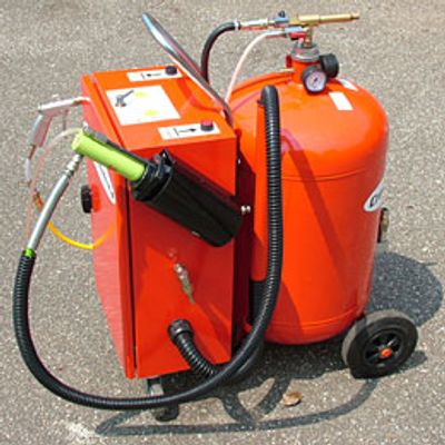 Simply attach an air line and the integral venturi will create a vacuum in each of the kulis to suck the fluids away. Our mobile petrol unit uses an air operated diaphragm pump to create the suction avoiding large volumes of petrol vapour being created causing a explosive harzard.