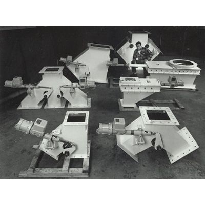 Bifurcated Diverter gates typically divert vertical free flow of material from one source to a choice of two other points. It is often utilized in redundant or multi-destination conveyor systems. Because this is usually achieved with a 90o flap type gate blade, an electric one quarter turn actuator is often used for simplicity.