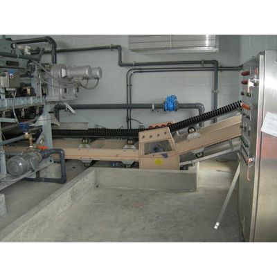 Shaftless Screw Conveyors are ideal for vertical conveying. Since they do not require a non-drive end bearing this eliminates the need for high maintenance bottom shafts and seals on a pulling shaftless vertical conveyor. A shaftless vertical feed is obtained by directly connected pushing shaftless conveyor which optimizes layout design flexibility. Vertical shaftless conveyors are available in a single unit up to 50 feet and systems in excess of 100 feet in elevation gain. Our vertical shaftless conveyors are ideally suited for waste water dewatered sludge with dry solids content of 18% or greater.