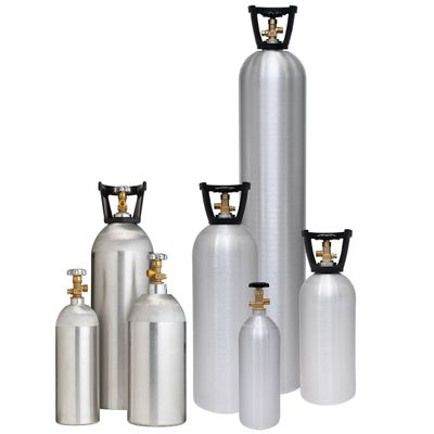 Cyl-Tec offers premium acetylene cylinders designed to provide a reliable and safe storage solution for acetylene gas. These cylinders incorporate acetone to dissolve the acetylene, which is then absorbed into a calcium silicate porous mass. This porous mass effectively inhibits decomposition, a critical factor in preventing hazardous conditions. The cylinders are factory-inspected and rigorously leak-tested to ensure reliability. Upright storage of these cylinders is recommended to prevent leaks and adverse reactions. They meet the DOT-8AL/TC-8WAM standards, with the larger 40 CF (B – Big Flange) model adhering to DOT-8AL specifications. Suitable for various industrial applications, these acetylene cylinders are a trusted choice for safe gas storage and transport, making them an essential component in any technical setting requiring dependable acetylene supply.Aluminum CO2 Cylinders
