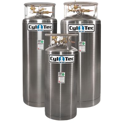 Cyl-Tec’s Titan® cryogenic liquid cylinders are ideal for both liquid or gas use, and are available up to 500 psi. Cryogenic liquid cylinders can be used for Oxygen, Nitrogen, Argon, Carbon Dioxide, and Nitrous Oxide service. Models are available in foot ring, and round or square caster bases.