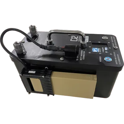 This device is a rugged, portable particle counter designed for military and industrial applications, offering integrated measurement of particle size, density, and conductivity. Engineered specifically for challenging environments, the unit is waterproof and submersible, meeting IP67 and MIL-STD-810 Method 512 standards. It can operate between -30°C and 50°C, handling environmental extremes typically encountered on platforms like aircraft carrier flight decks. Utilizing laser obscuration as its principle of operation, it complies with ASTM D7619 for particle counting and includes channels for particles sized 4µm to 30µm. The device offers multiple power source options: a standard military battery, a battery pack from the PEAK kit, or wall power. Equipped with a high-capacity 99Wh lithium-ion battery, it supports continuous operation for up to 8 hours and 200 tests before recharging. Features such as a dimmable color display with ISO grading and a data management system for results output make it highly versatile for on-site applications.