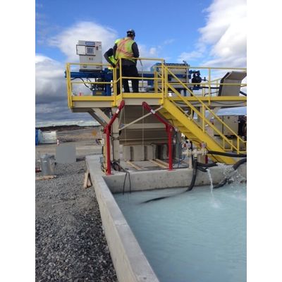 Introducing the Sperry Model 800mm Dambra Canada Filtration Press, designed for high-efficiency filtration in demanding industrial applications. This robust unit features an 800mm plate size and a 10 cubic ft filter cake capacity, ensuring optimal performance for large-scale operations. The open discharge system is equipped with a 3-inch aluminum air diaphragm pump, delivering reliable and consistent throughput. The electric hydraulic closing unit, complemented by an HMI (Human-Machine Interface), provides precise control and ease of operation. Additionally, the extended RAM allows for daisy chain opening, facilitating seamless integration into existing workflows. Ideal for installation in Canadian ready mix plants, this filtration press ensures superior filtration, operational efficiency, and durability, making it an essential asset for your industrial needs.