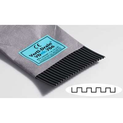 Verti-Drain® is a pocket-style prefabricated vertical drain (PVD) for the improvement of soft ground made from a mechanically strong PP core and a nonwoven filter jacket specialized for PVD application. The product quality of Verti-Drain® is assured by many certificates including ISO9001, CE, Q-mark, R-mark, Eco-Label, etc. Since Verti-Drain® is produced with filter materials having AOS suitable for the improvement of soft soil, filter clogging can be prevented over a long term. Verti-Drain® is resistant to friction and scratching caused during its installation and also has a physically durable structure with a high strength. Verti-Drain® has a high resistance to bacteria and chemicals. Verti-Drain® is materially and ecologically stable since it is made of polymers which don’t cause contaminants.