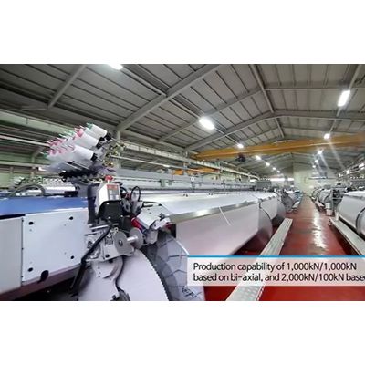 30 units of broad width (5.4m width) weaving machines for polyester woven geotextile. The largest number of units owned by a single company in the world. Monthly average production of 1.5 million square meters.